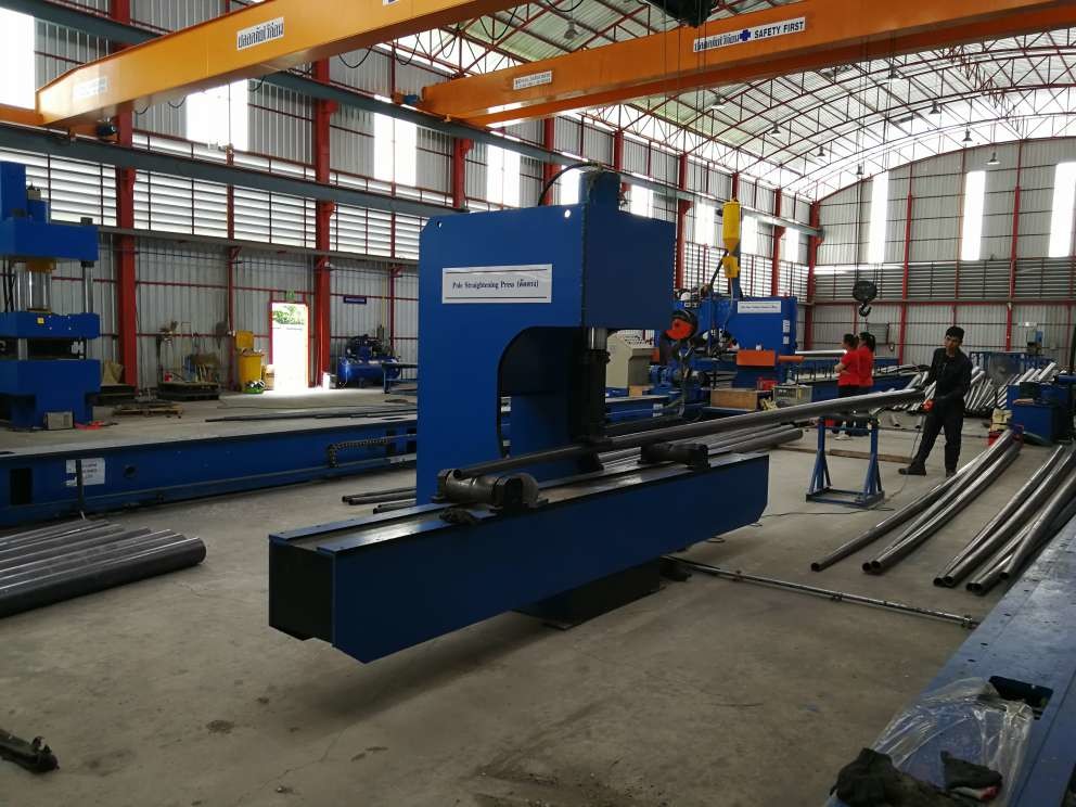 USO: Después de soldar con autógena, el polo estará doblado, no recto, y entonces utilizamos esta máquina para hacer el polo ligero derecho.