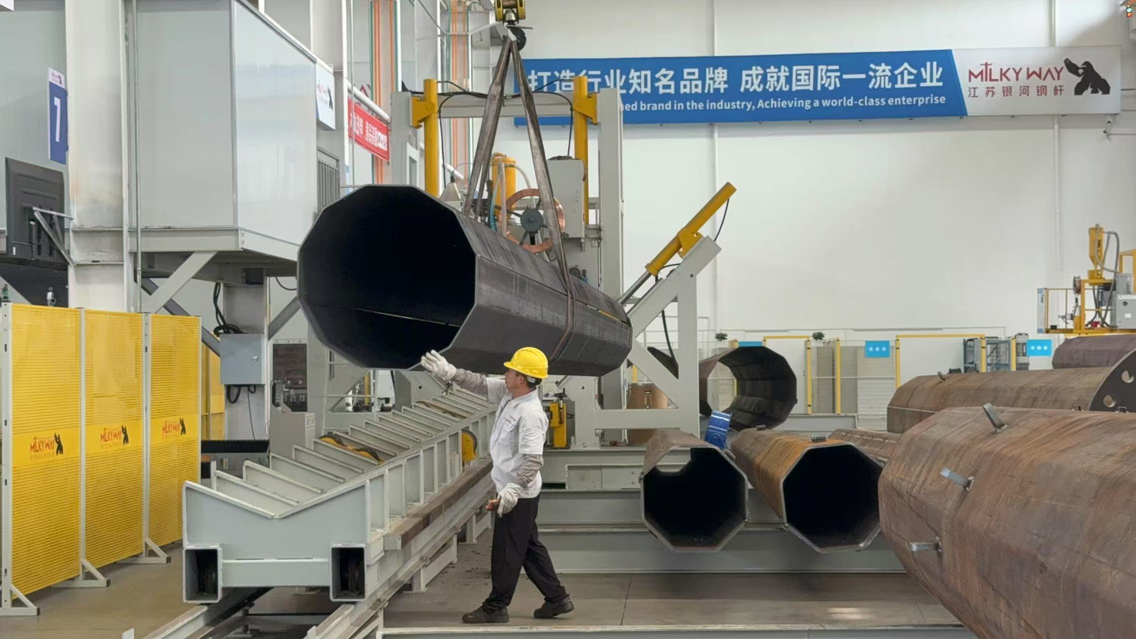 Máquina de soldadura por cierre de postes de mástil alto, es adecuada para postes poligonales y cónicos circulares de uno o dos cuerpos. Es una línea de soldadura automática, la estructura tipo pórtico es fija y con sistema de soldadura, carro de longitud completa del poste con servomotor para movimiento de velocidad ajustable. El cilindro hidráulico puede empujar la rueda de sujeción para cerrar el poste y realizar la soldadura de cierre al mismo tiempo.